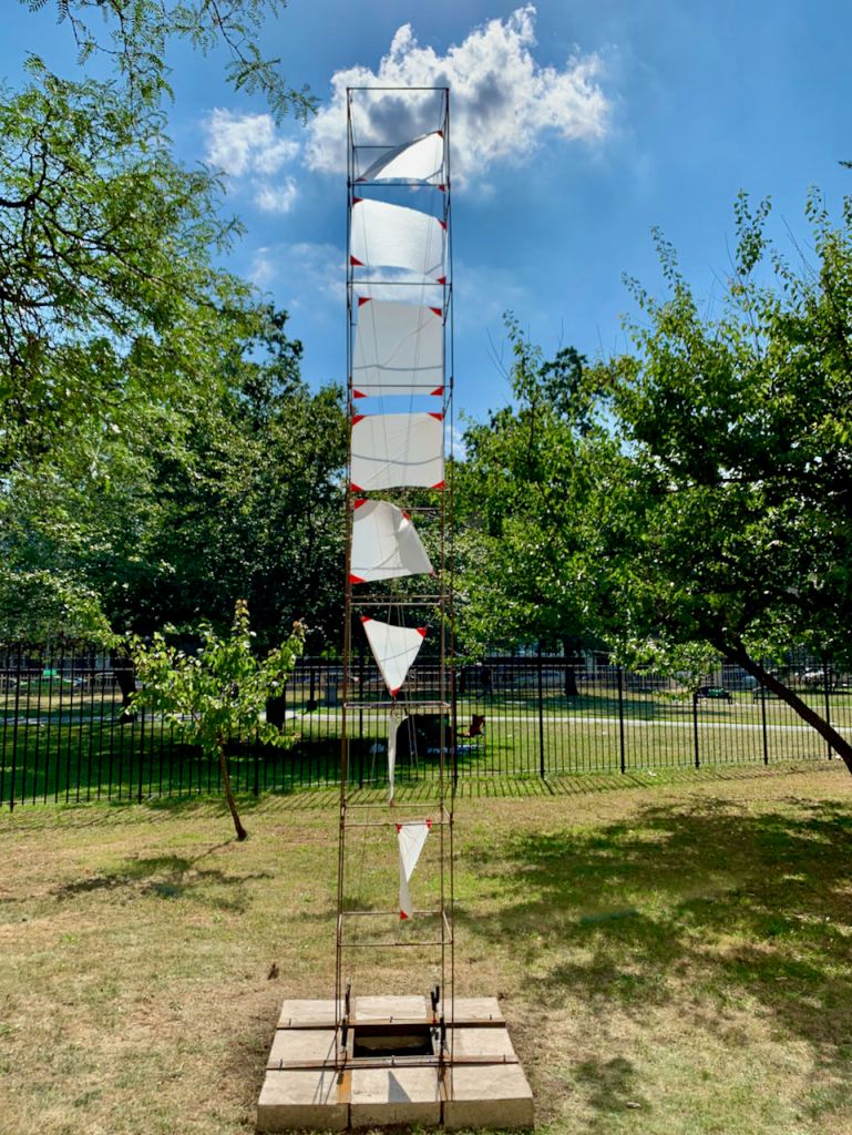 Tower, an interdisciplinary video installation, highlights accounts of climate change gathered through interviews with people of multilingual backgrounds. To overcome the vicissitudes of linguistic and cultural differences Tower seeks to unify people to achieve a common goal of protecting nature. The project combines a welded steel sculpture, video, archiving and community participation.